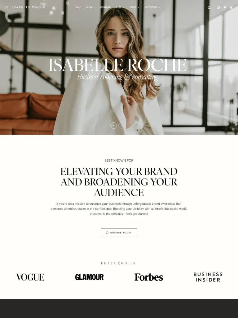 Charvi Coach & Consulting is a feminine business WordPress theme crafted for coaches, mentors, consultants, and entrepreneurs who want a professional yet stylish online presence. With its clean, modern, and detail-focused design, Charvi offers a crisp aesthetic that instantly elevates your brand.