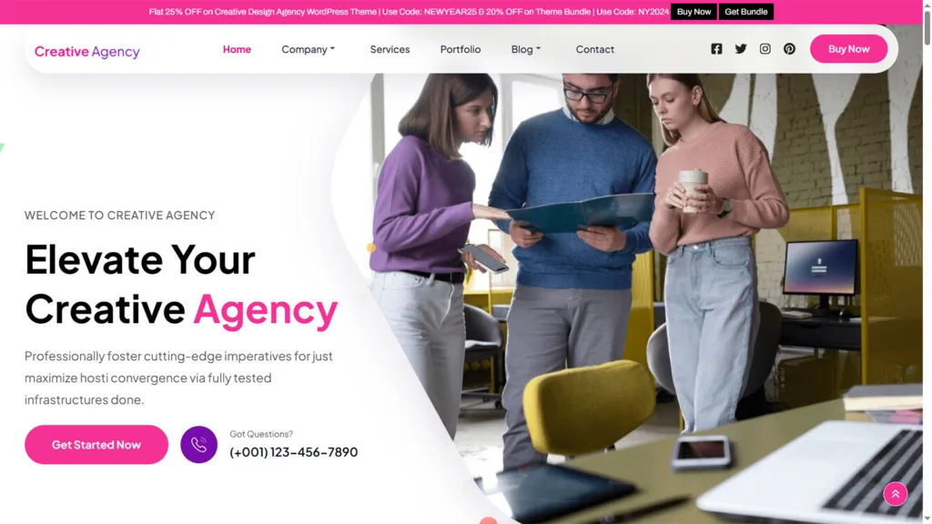 Unleash your creativity with the Creative Design Agency theme, a modern and responsive WordPress solution built for design studios, branding agencies, logo creators, web designers, and graphic artists. Its sleek and professional design provides the perfect platform to showcase your work, highlight services, and attract clients with confidence.